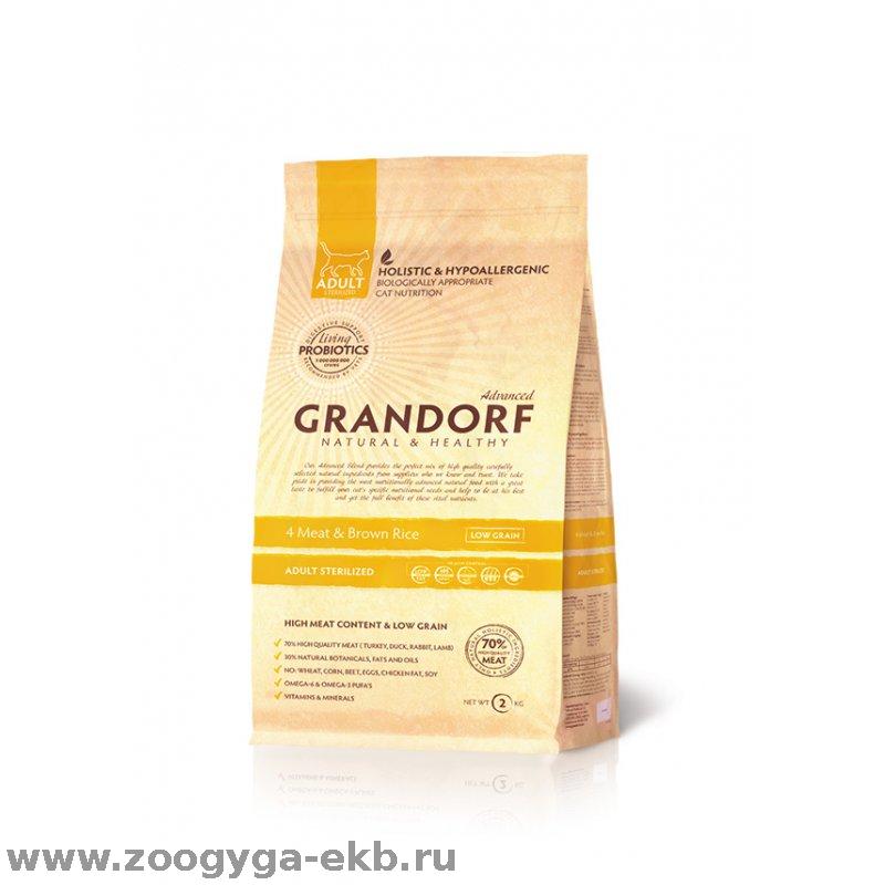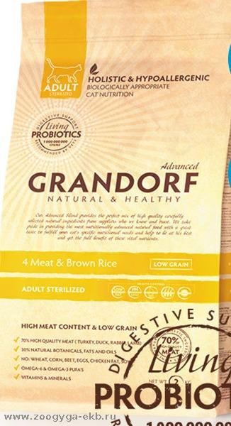 Grandorf cat Indoor Prоbiotic Sterilised д/стерилизованных кошек 4 вида мяса 400гр