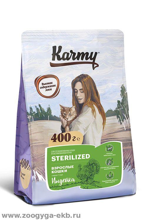 Karmy Sterilized д/стерилизованных кошек и кастрированных котов Индейка 400гр