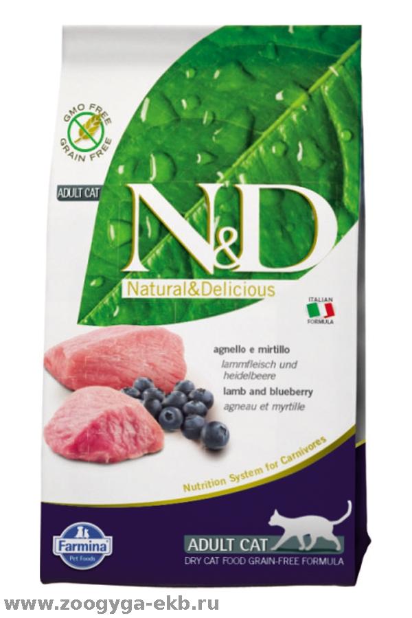 N&D беззерновой ягненок и черника для взрослых кошек 300гр