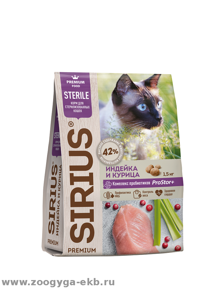 SIRIUS сухой корм для стерилизованных кошек и котов ИНДЕЙКА И КУРИЦА 400гр
