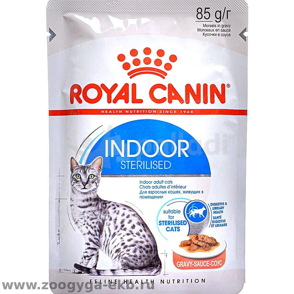 Royal Canin INDOOR sterilised влажный корм для взрослых стерилизованных кошек, кусочки в соусе, 85г